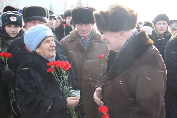 Многие специально приехали в этот день в столицу края, чтобы возложить цветы к Мемориалу Славы, монументу «Героям защитникам Отечества - от благодарных потомков в честь 50-летия Великой Победы», на котором высечены фамилии Героев Советского Союза и полных кавалеров ордена Славы.