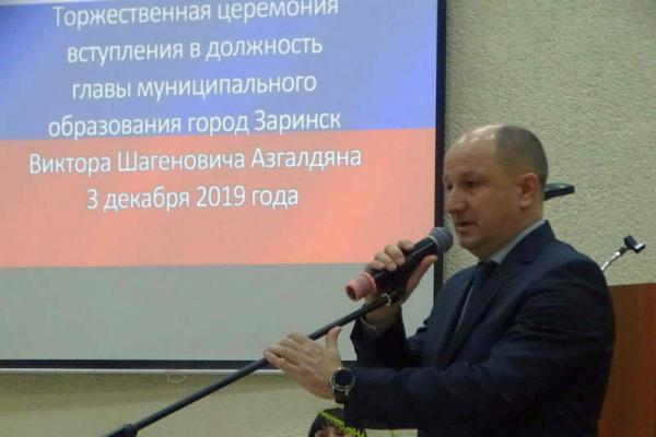 3 декабря в большом зале администрации Заринска Виктор Азгалдян принес присягу и вступил в должность главы города. На торжественном мероприятии присутствовали депутаты, руководители предприятий, представители ветеранских организаций, жители города.